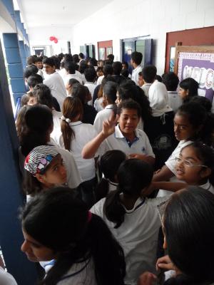 An meiner Schule wurden die Kinder deshalb in Gruppen aufgeteilt und alle halfen zusammen, um den König gebührend zu begrüßen: sie fertigten verschiedene Pookalam für ihn an: