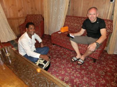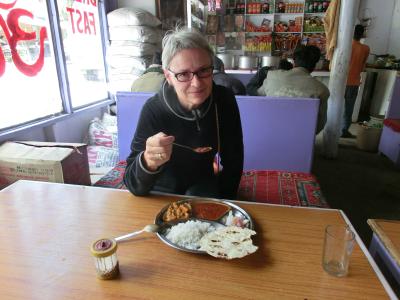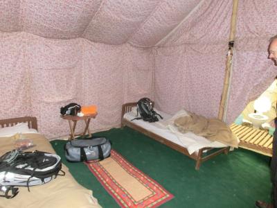 Endlich in unserem Nachtlager angekommen, merkten wir, dass wir dort nicht alleine waren: etwa 50 Biker ("Royal Enfield Bullet") teilten das Camp mit uns. Wider Erwarten war die Nacht ruhig, allerdings sank die Temperatur auf 3 Grad!!!! Am Morgen brachte man einen Eimer warmes Wasser für die Morgentoilette!