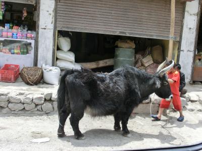 Die Reise mit dem Auto ging durch unbeschreiblich schöne Landschaften unter azurblauem Himmel. Immer wieder begegneten uns Yak-, Schaf- und Ziegenherden auf der Straße.