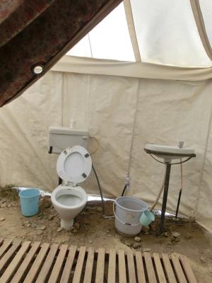 Auf dem anderen Eimer, der vom Vorabend in unserem "Badezimmer" stand, schwamm eine dünne Eisschicht!!