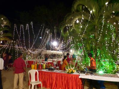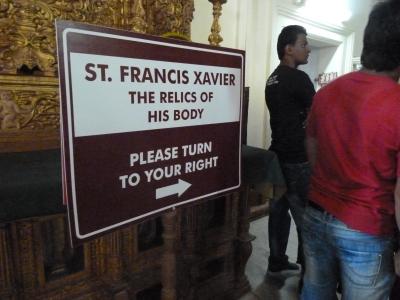 Sehr aufregend! Nach dem Frühstück konnten wir außerhalb der Hotelanlage unseren Scooter in Empfang nehmen und düsten damit los Richtung Alt-Goa, um den Heiligen St. Francis Xavier zu sehen. Die Scooter-Fahrt erwies sich schon bald als sehr nervig, da man den gesamten Straßen- und Verkehrsdreck (nicht unbeträchtlich!) abkriegt, es unglaublich heiß ist (35 Grad), die Inder auch hier abenteuerlich fahren und ich als Beifahrerin keinen Helm abbekommen habe! Nach einer Stunde Rollerfahrt in der Hitze und zurückgelegten 25 km überlegten wir schon, umzukehren. Nach einer weiteren Stunde durch Stadtverkehr erreichten wir durchgeschwitzt und verdreckt Alt-Goa. Der Leichnam des Heiligen Franz Xaver ist etwas Besonderes, da er auch 125 Jahre nach seinem Tod im Jahr 1552 kaum verwest war. Unser Fahrer George erzählte uns, dass man immer noch die Fußnägel und die Fingernägel schneiden muss (was natürlich jetzt nicht mehr stimmt).