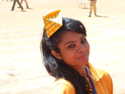 Der ganze (Sand-)Platz muss sehr früh morgens schon mit diesen weißen Linien bestaubt worden sein, dann als ich gegen 8.00 ankam, war das meiste schon aufgebaut. Sogar unser food-stall war ansehnlich gestaltet. Da ich ja teacher-leader der CAS-Gruppe "Helping Hands" (für das Projekt www.echoindia.org) bin, hatten wir beschlossen, als fundraiser Getränke und chips (ich weiß, nicht besonders gesund, aber wir sind hier in Indien!!) zu verkaufen.