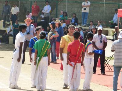 Der lang erwartete Tag war da! Zwei Wochen lang war täglich geprobt worden. Die besten Sportler maßen sich, die Nationalhymne und der schoolsong wurden täglich gesungen und das Marschieren wurde geübt. Ich war wirklich überrascht, mit wieviel Aufwand und Liebe der Sportplatz einer befreundeten Schule (unserer ist zu klein) gestalten worden war, um den Tag für Schüler, Eltern, Lehrer und Gäste zu einem wirklich besonderen Ereignis zu machen: